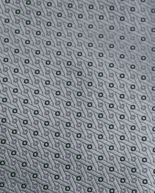 The “Trademark Tipping Tie” is our necktie that has the green diamond-shaped area with the trademark of Jaan J. embroidered in black.