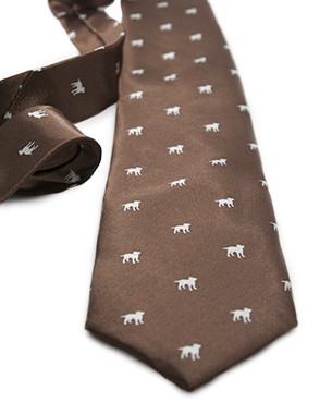 The “Jaan J. Tipping Tie” is our necktie that has the black diamond-shaped area with “Jaan J.” embroidered in gray.