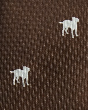 The “Trademark Tipping Tie” is our necktie that has the green diamond-shaped area with the trademark of Jaan J. embroidered in black.