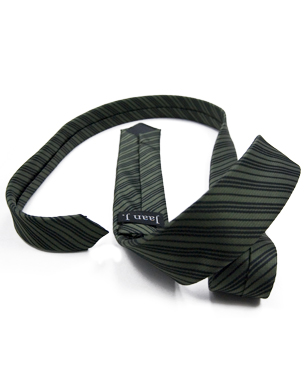 The “Trademark Tipping Tie” is our necktie that has the green diamond-shaped area with the trademark of Jaan J. embroidered in black.