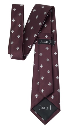 The “Trademark Tipping Tie” is our necktie that has the green diamond-shaped area with the trademark of Jaan J. embroidered in black.